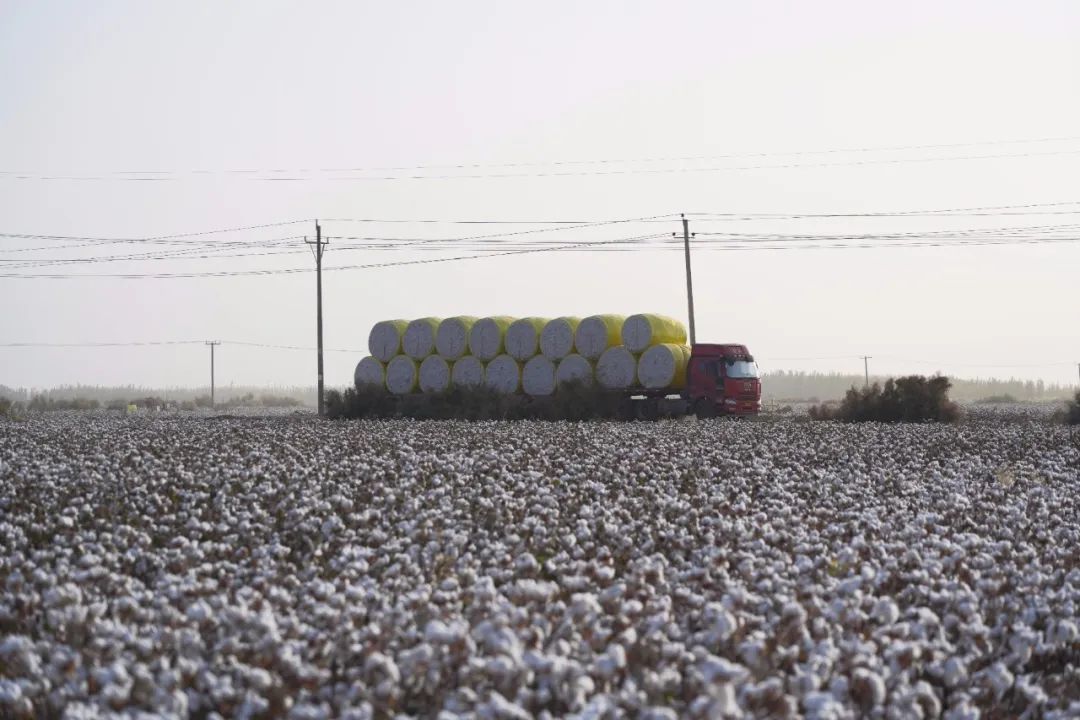 ▲新疆阿克蘇·運(yùn)送棉包的貨車(chē)